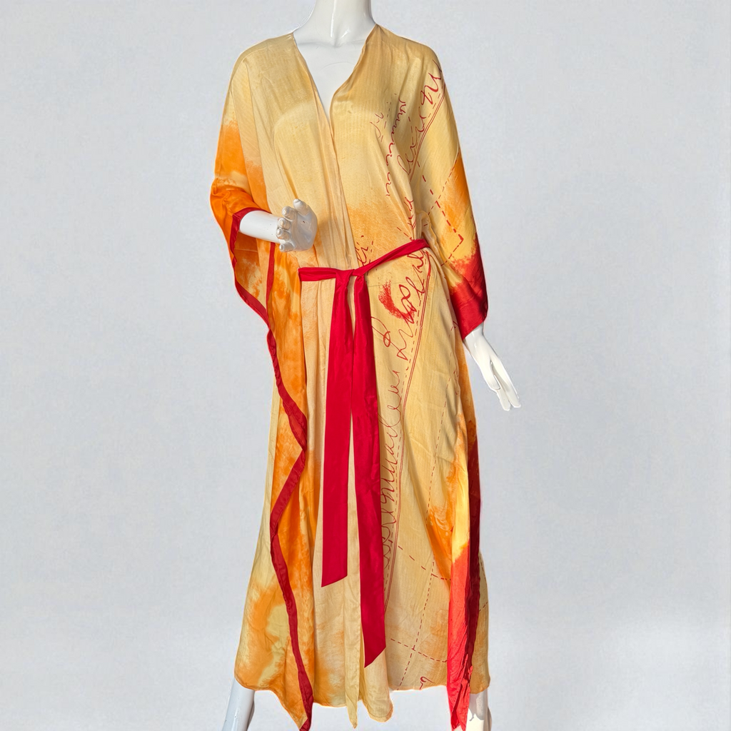 Pineapples & Dragonflies - Kimono | Orange Dune with Red Silk Belt